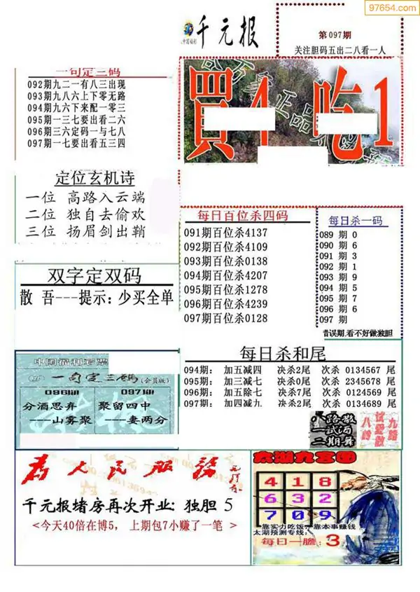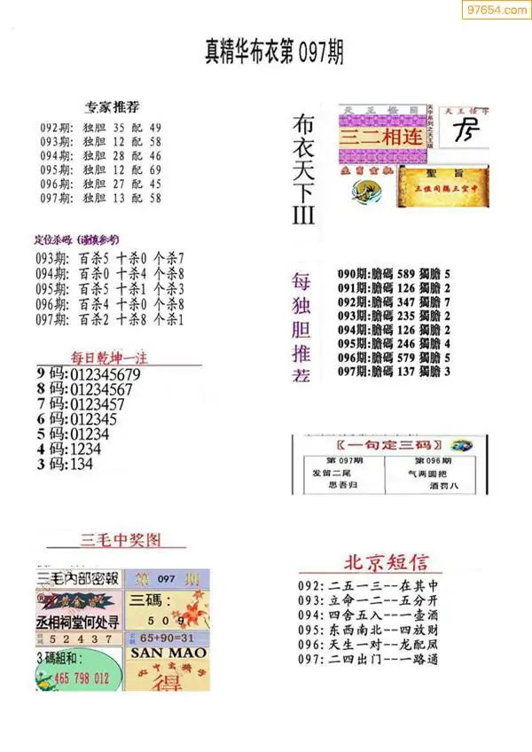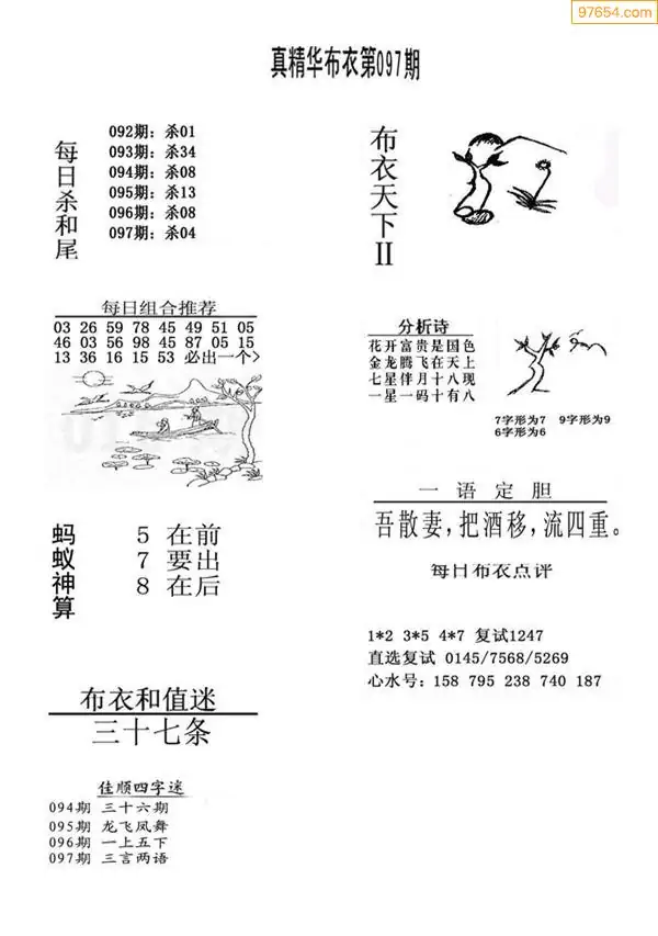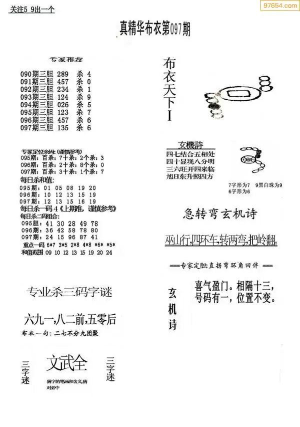 福彩097期3d真精华布衣+布衣早报(转载)