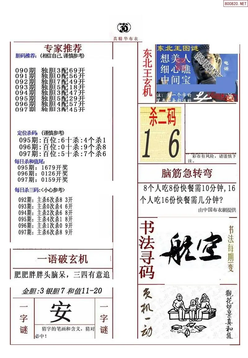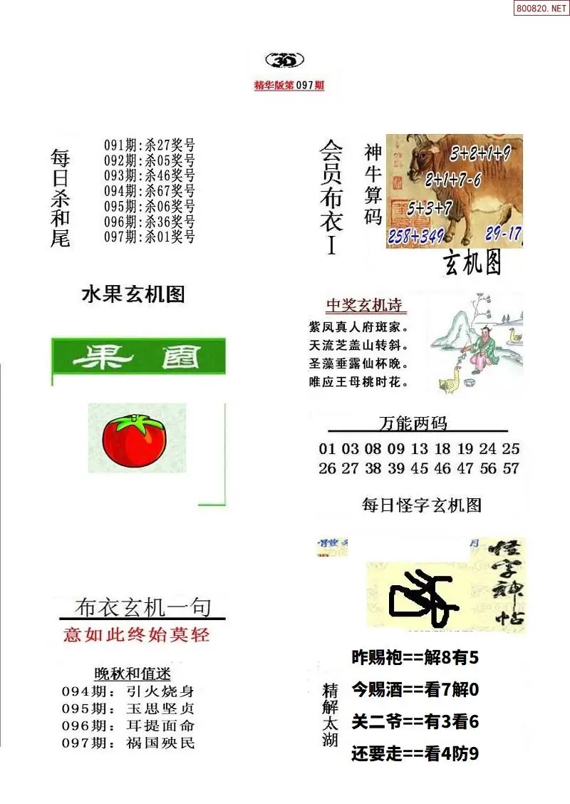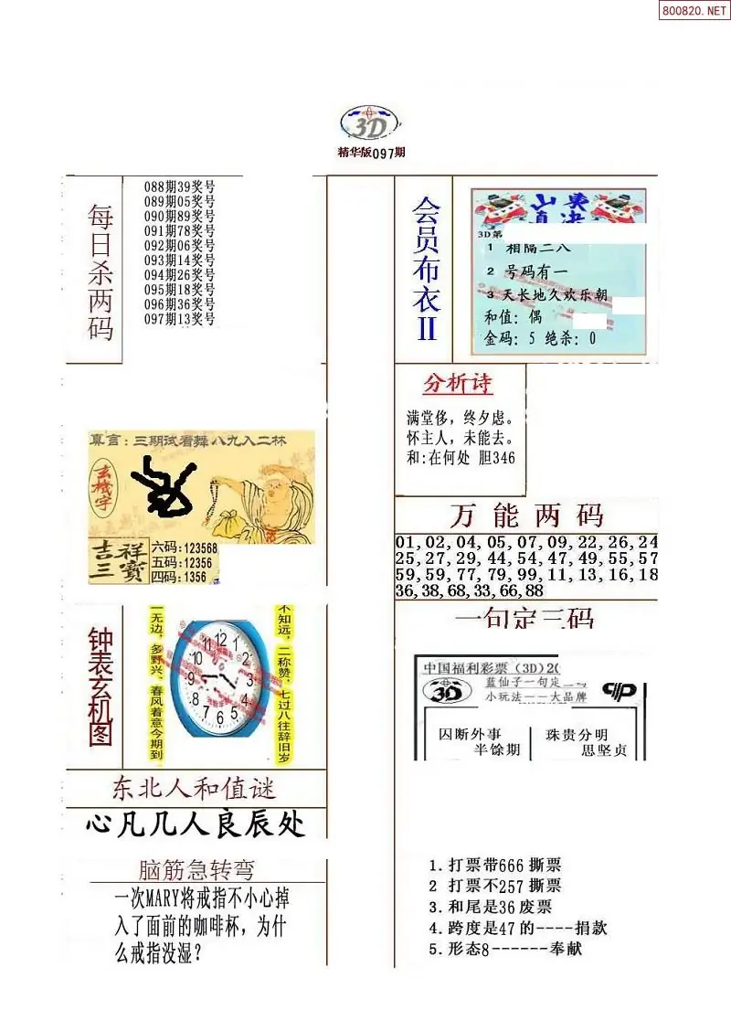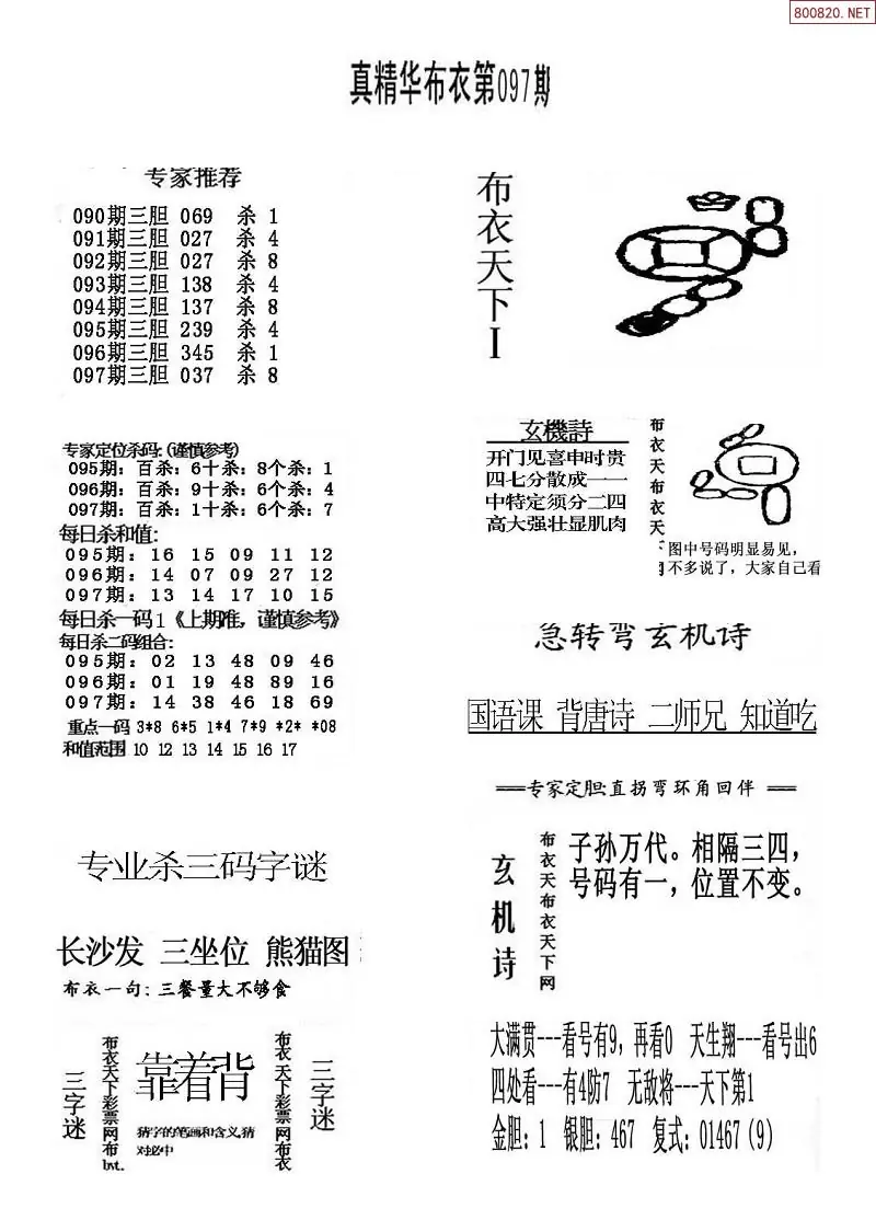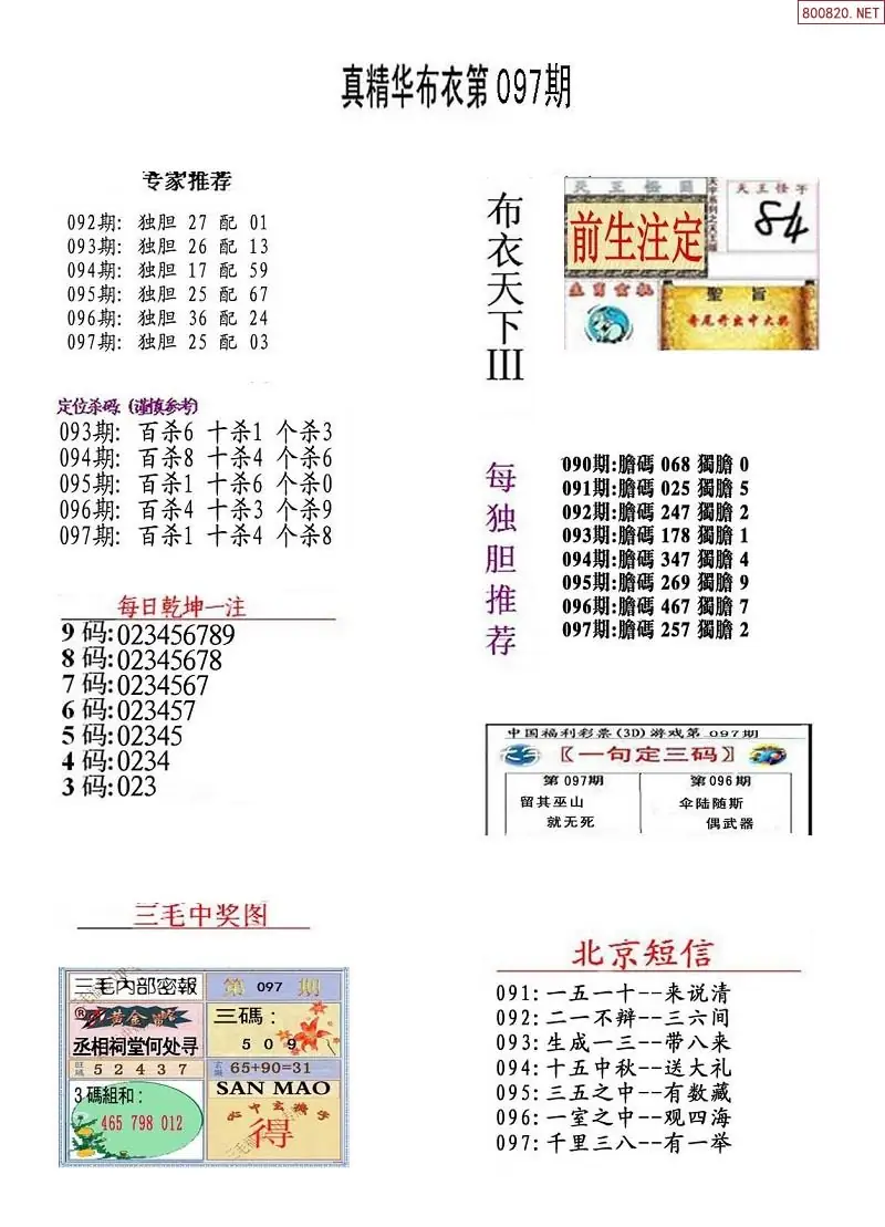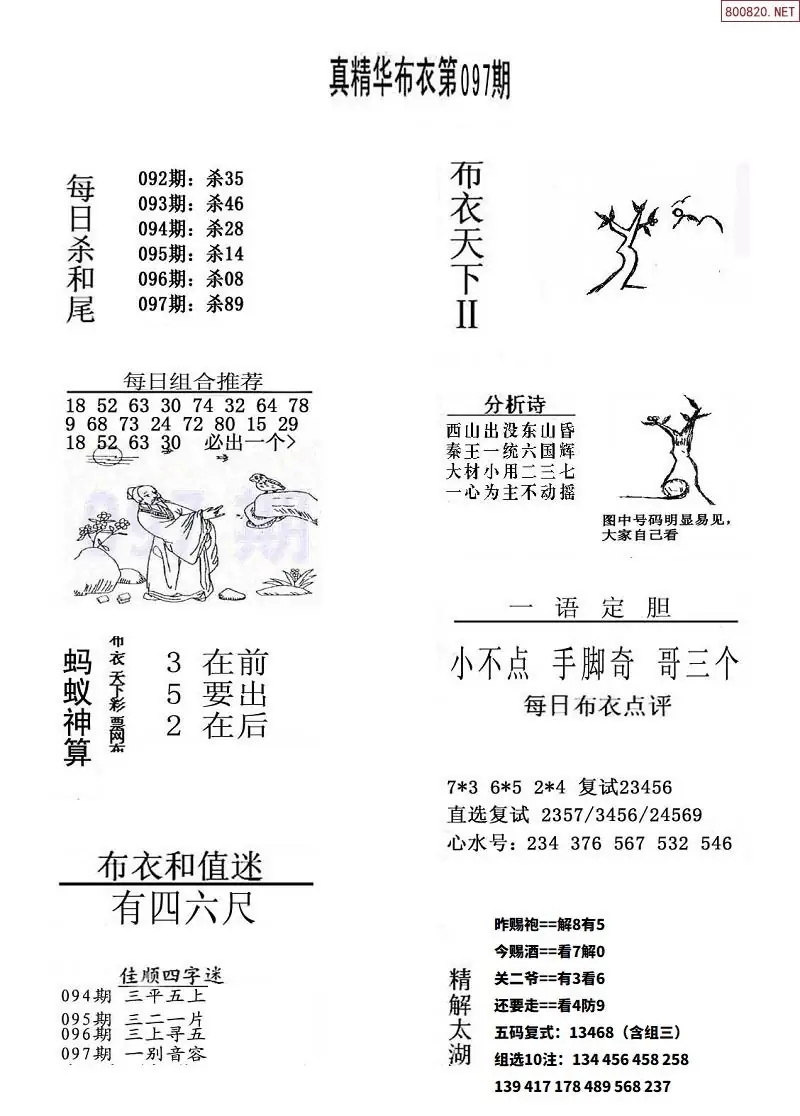 福彩097期3d真精华布衣+布衣早报(转载)