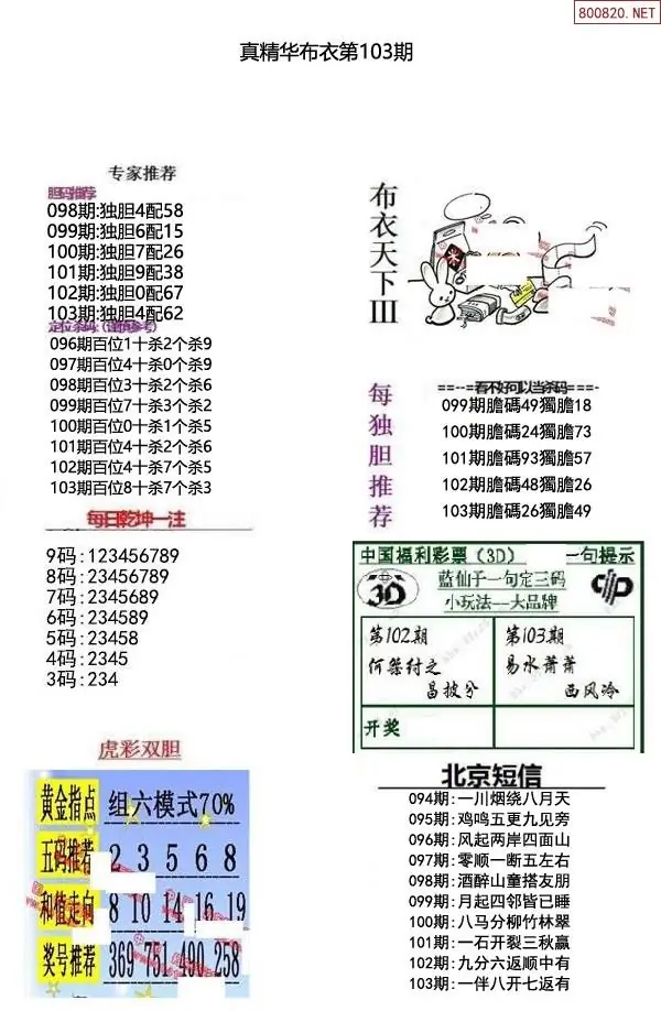 福彩103期3d真精华布衣+布衣早报(转载)