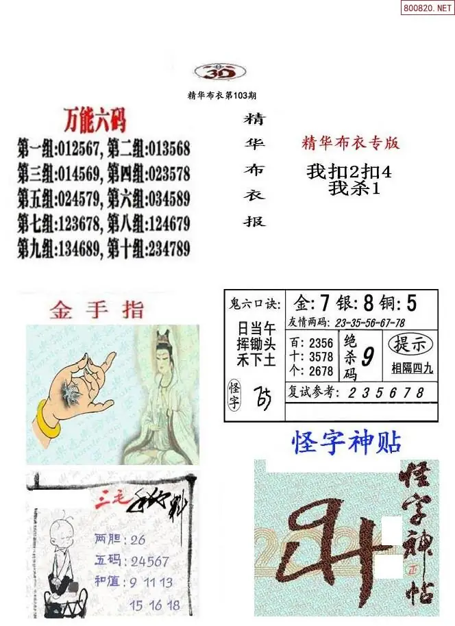 103期真精布衣3d正版布衣123456(原创)
