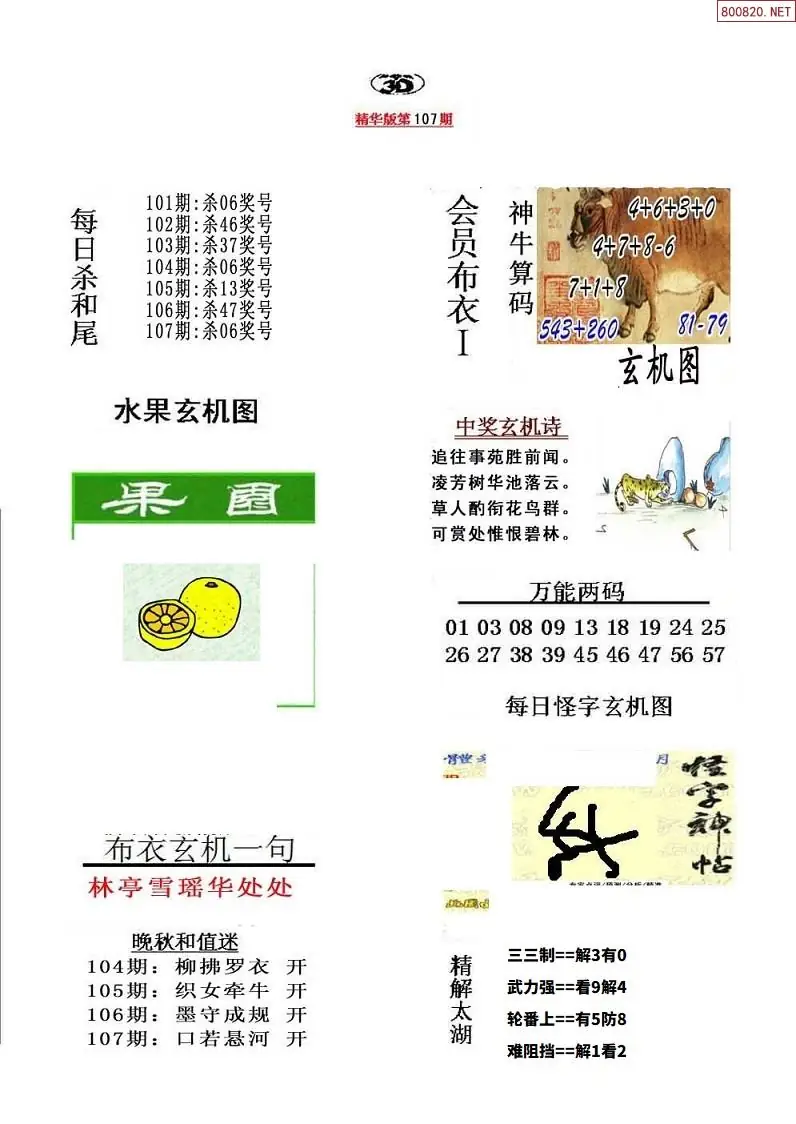 26年107期牛彩布衣精选推荐