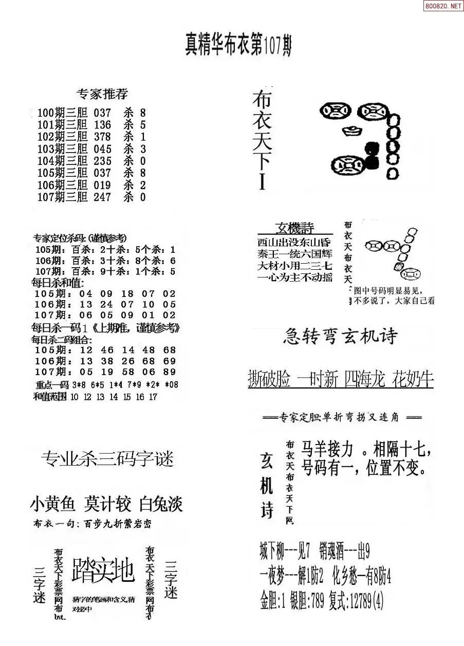 福彩107期3d真精华布衣+布衣早报(转载)