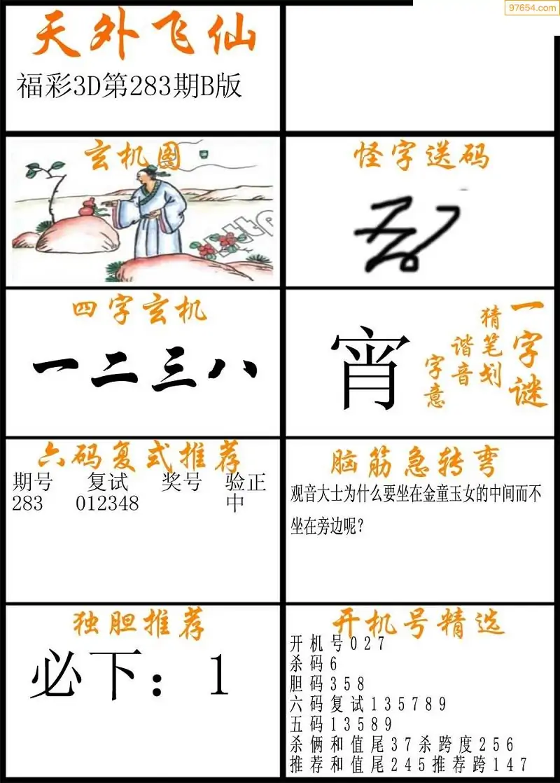 283期福彩3d天外飞仙B版