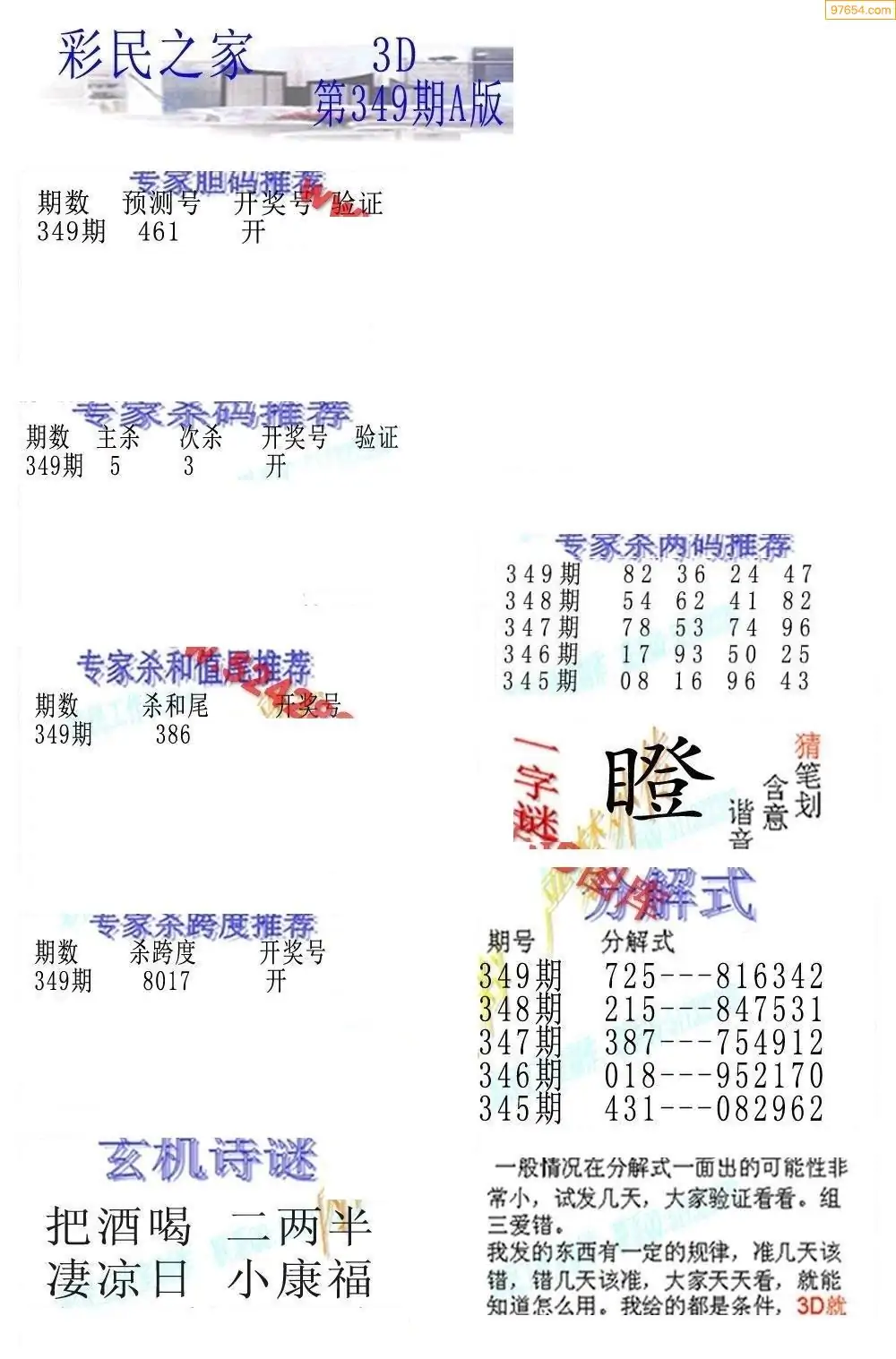 25349期3D彩民各类资料A版