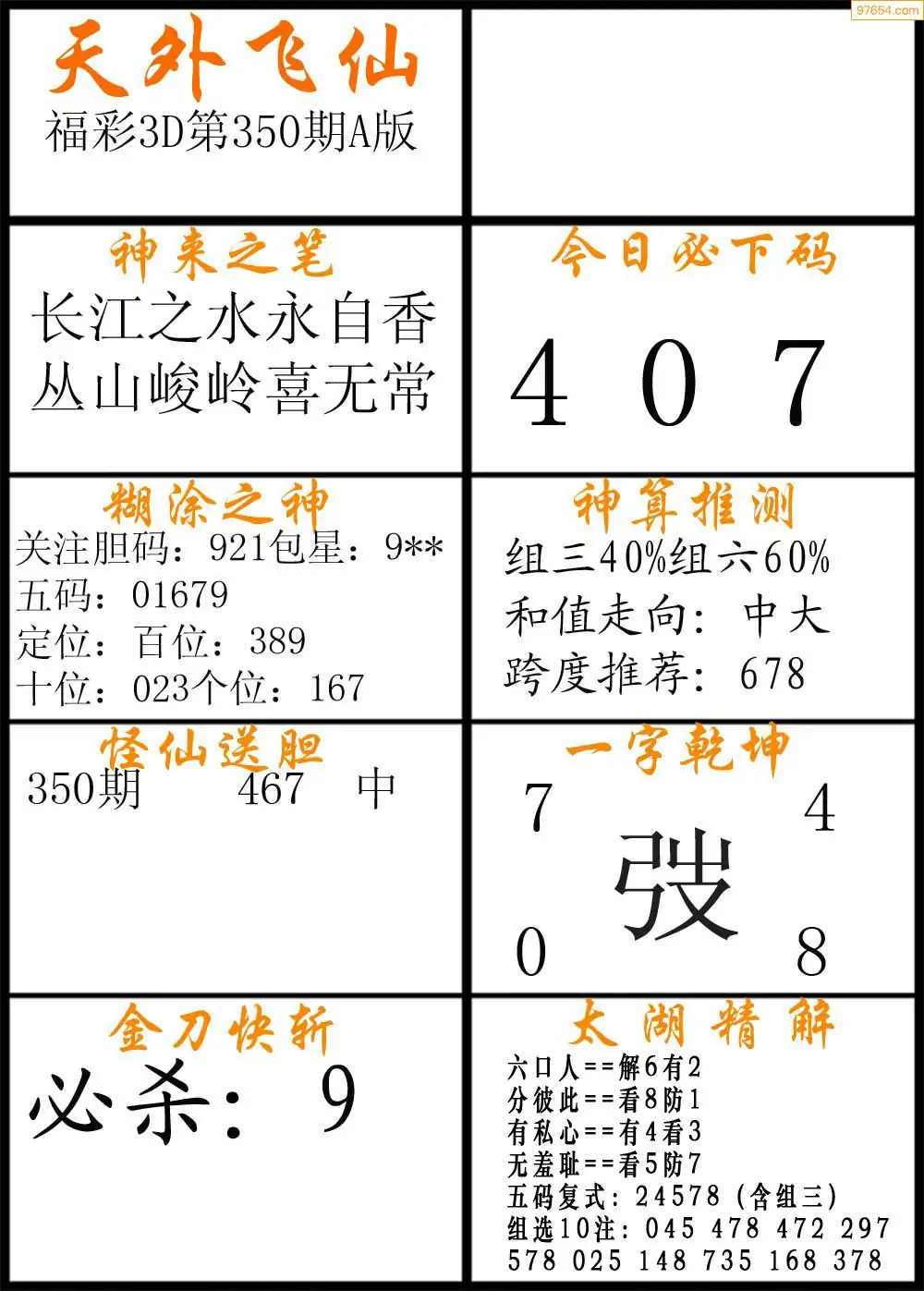 350期福彩3d天外飞仙A版