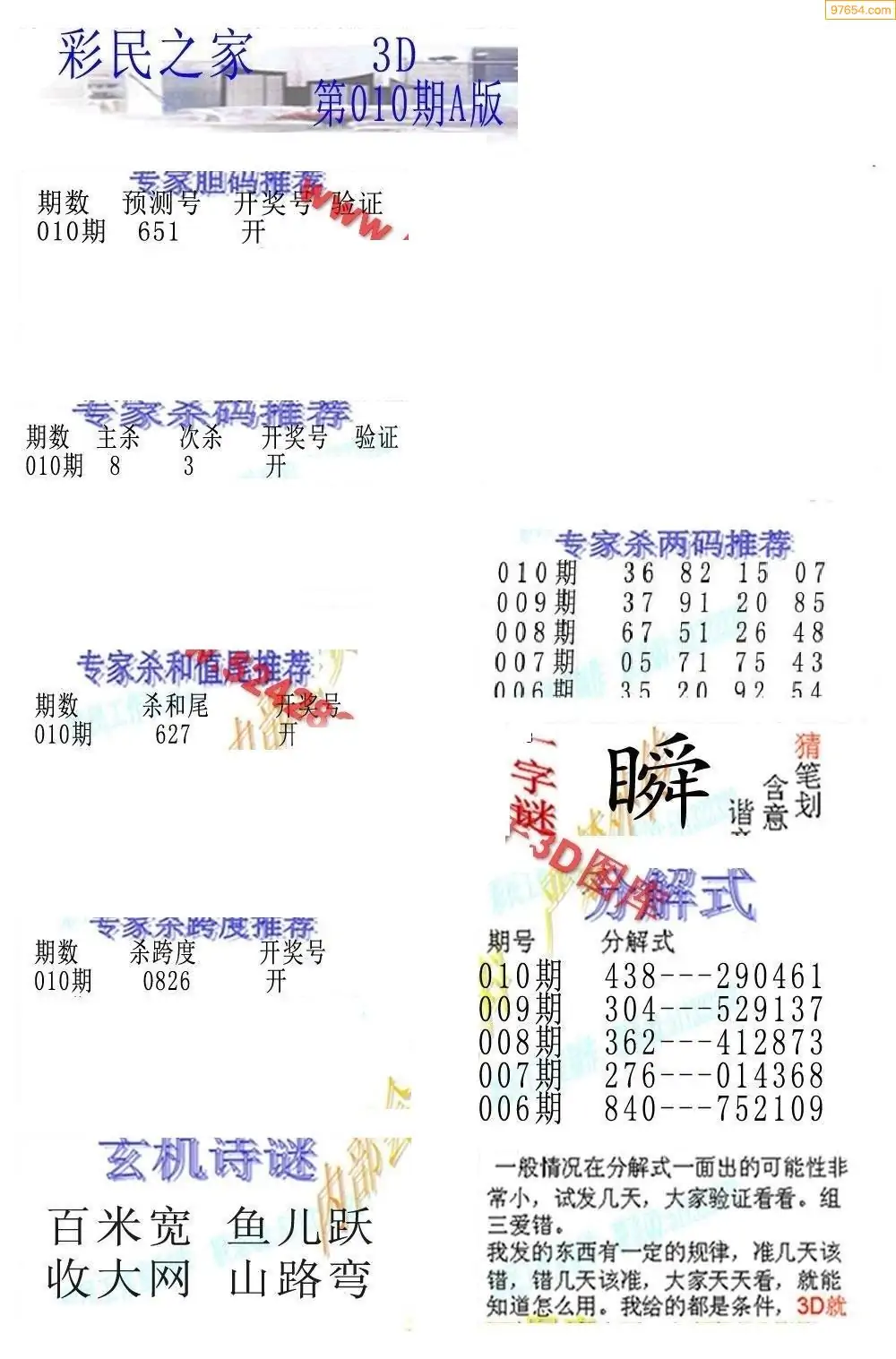 26010期3D彩民各类资料A版