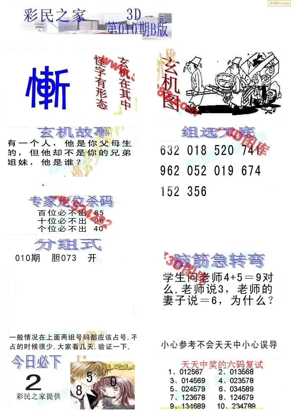 26010期3D彩民之家打印B版