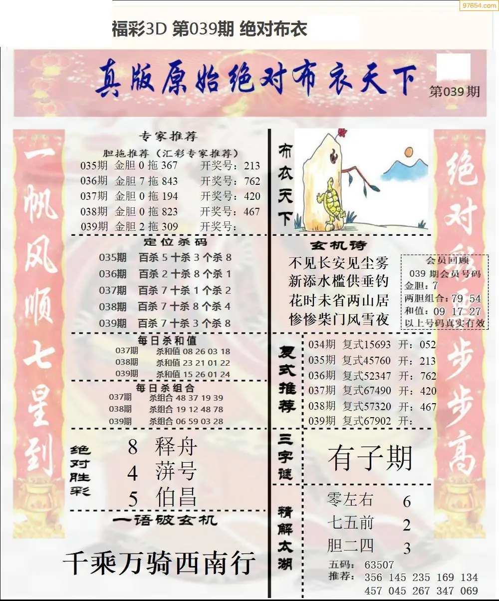 039期绝对布衣3d新版1
