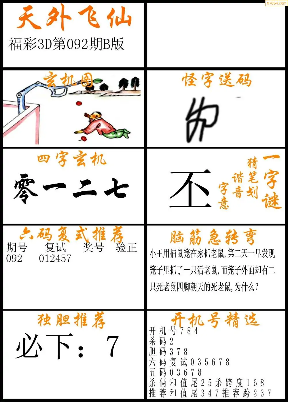 092期福彩3d天外飞仙B版