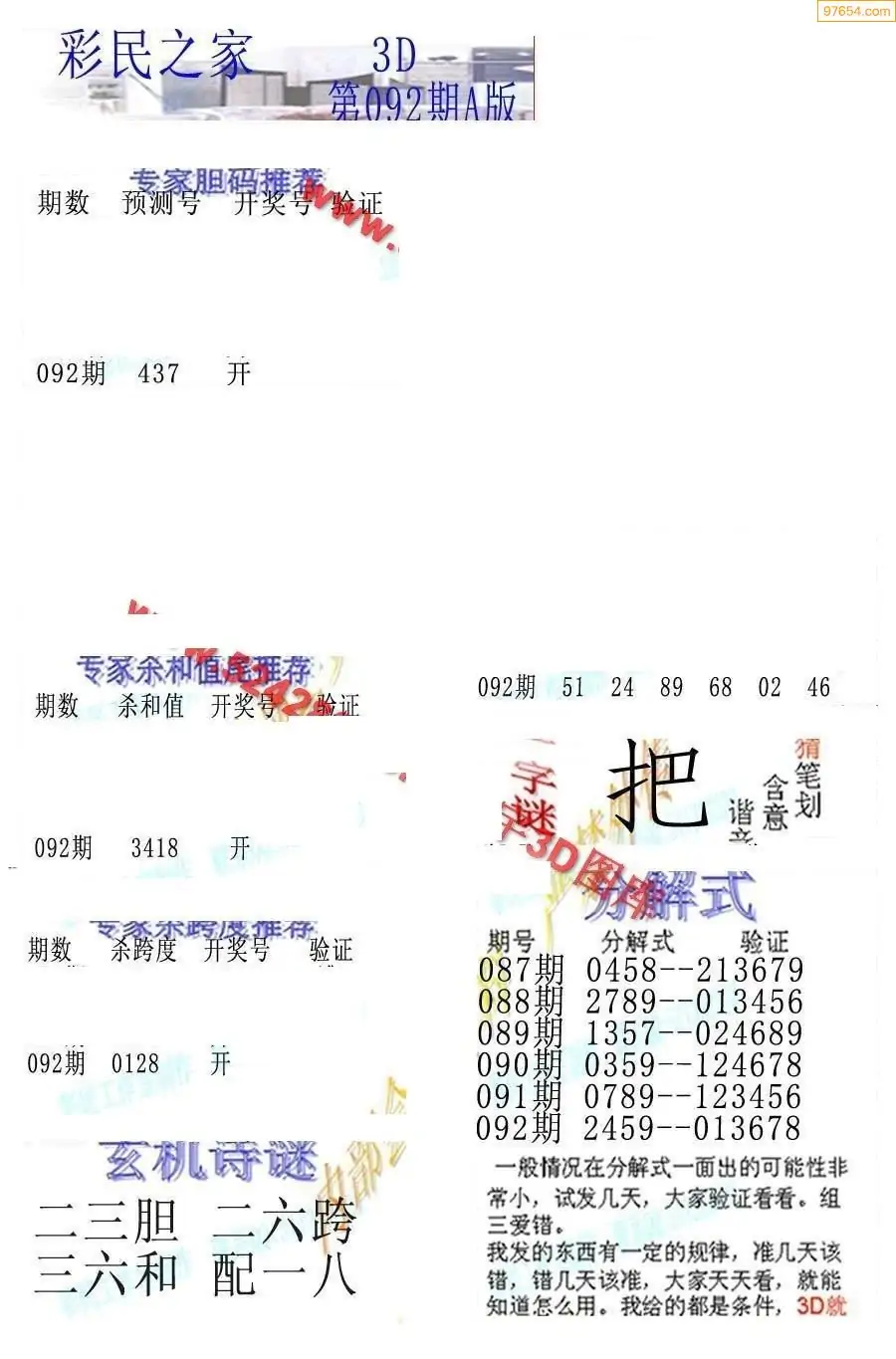 26092期3D彩民各类资料A版