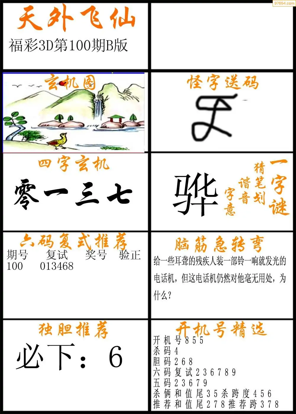 100期福彩3d天外飞仙B版