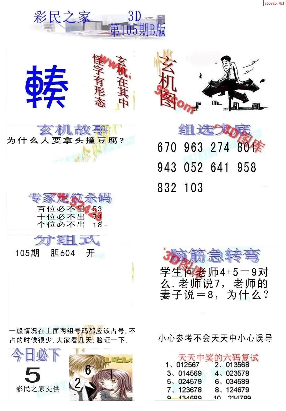 26105期3D彩民各类资料A版