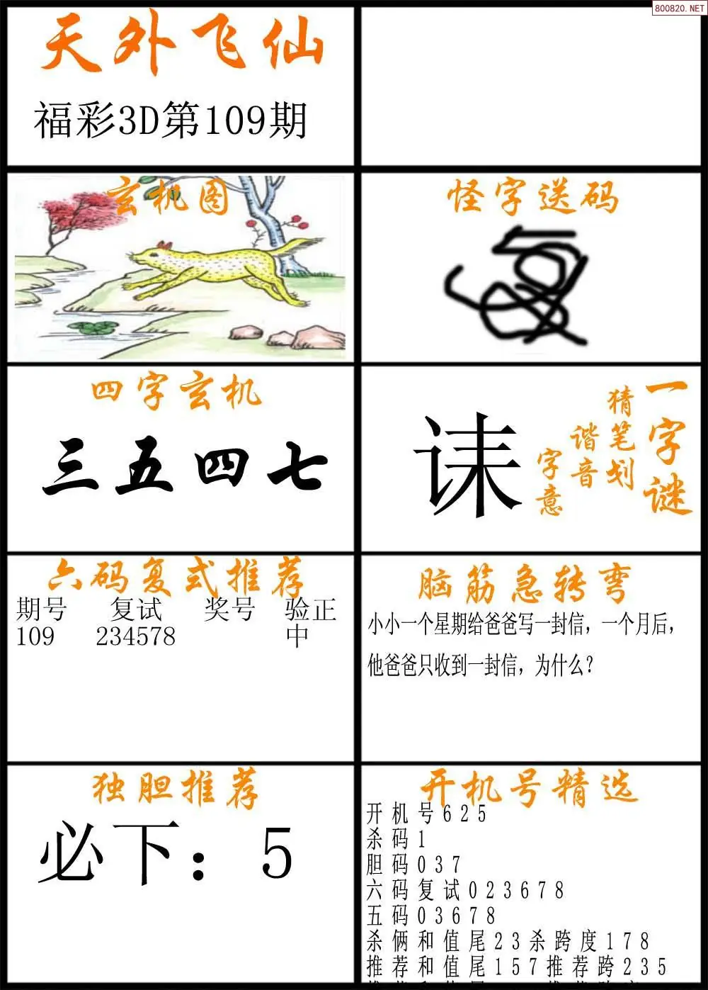 109期福彩3d天外飞仙B版