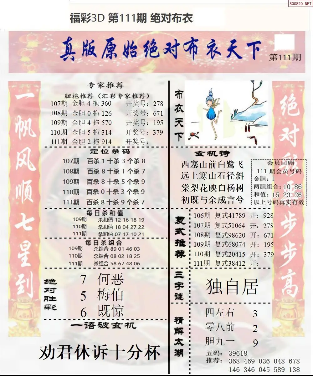 111期绝对布衣3d新版1