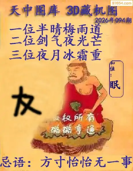 福彩26年094期天中图库3D藏机图谜