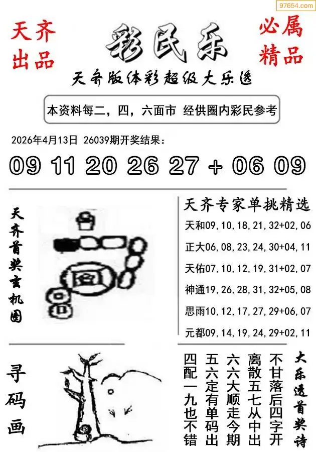 26年039期超级大乐透专家预测汇总(天中整理)