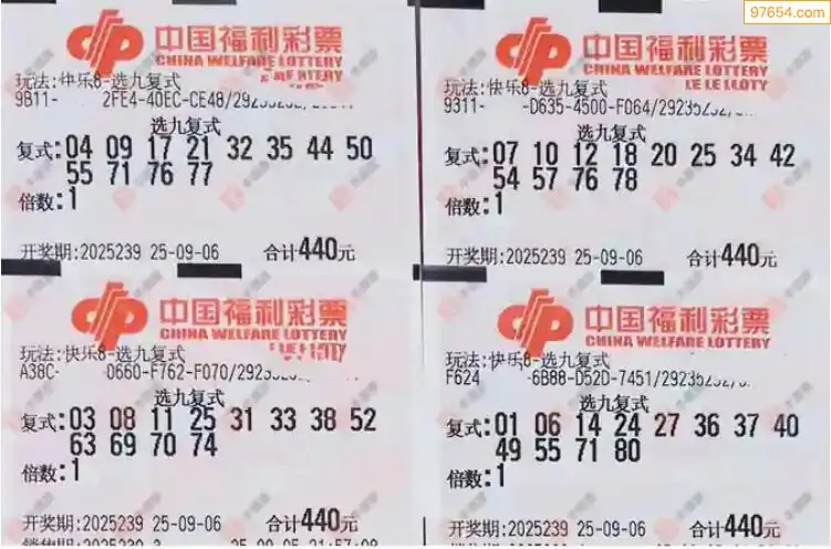 福彩快乐825239期选九复式实票分享