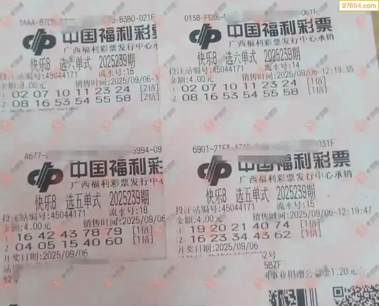 福彩快乐825239期选六单式实票欣赏