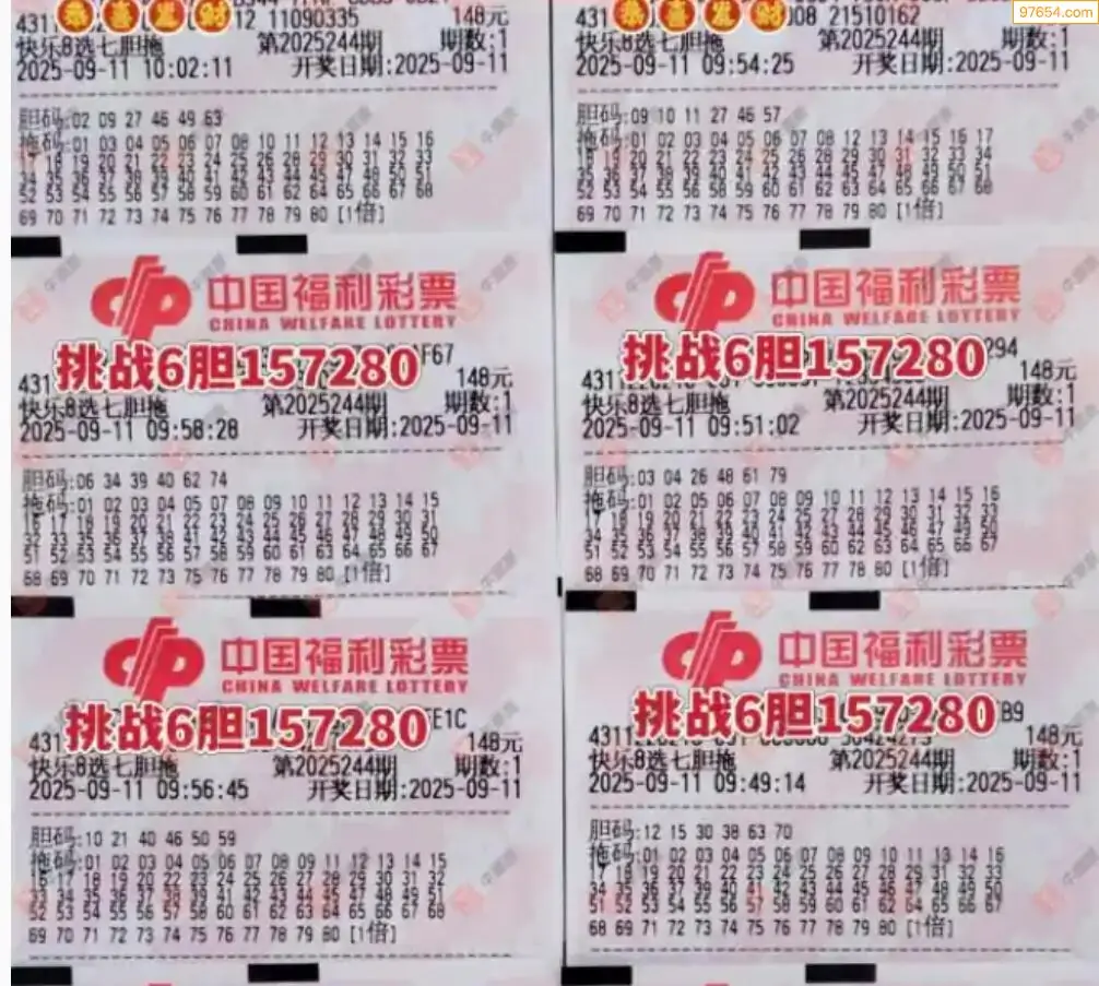福彩快乐825244期选七胆拖实票欣赏