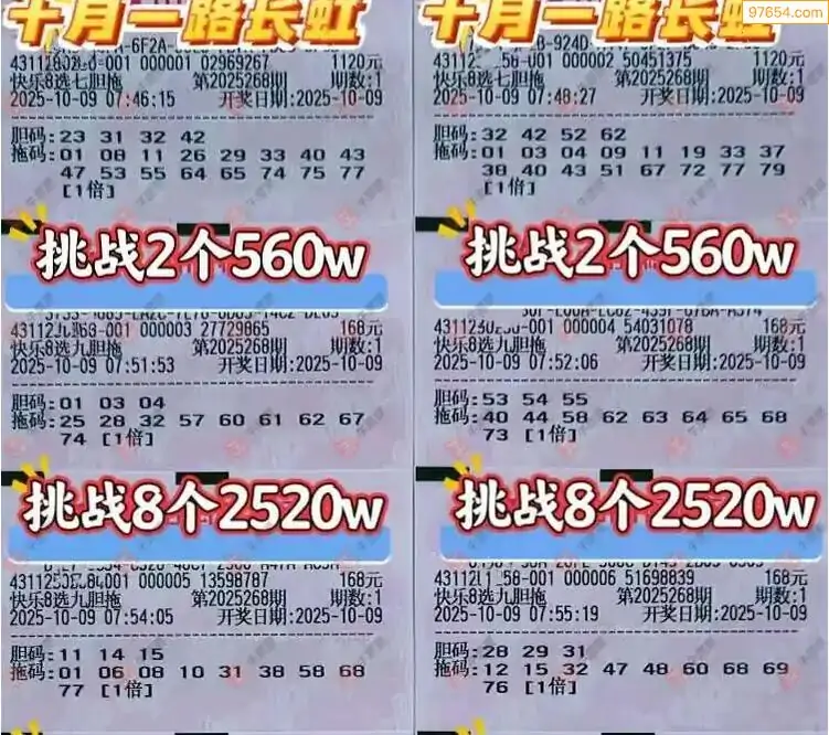 福彩25268期快乐8选七胆拖实票