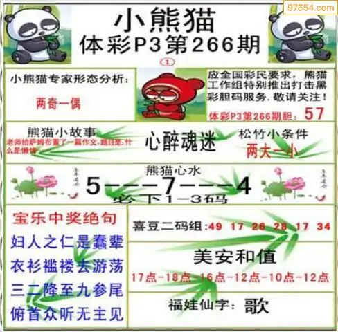 25年天吉体彩P3玄机怪字266期图迷