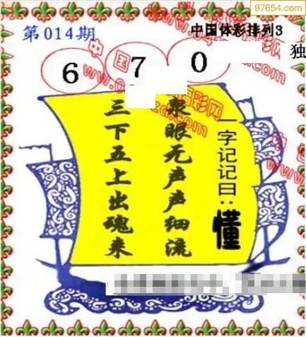 26年天吉体彩P3玄机怪字014期图迷