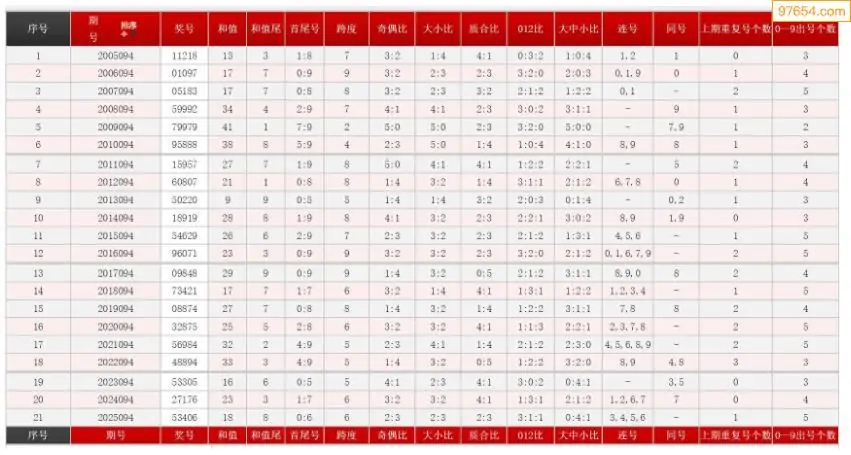 094期体彩P5历史同期对比图表+近期走势图分析