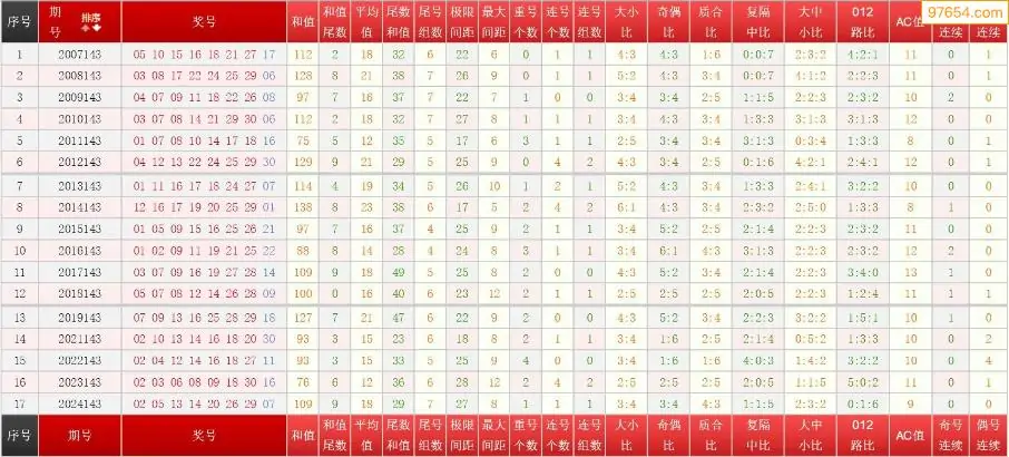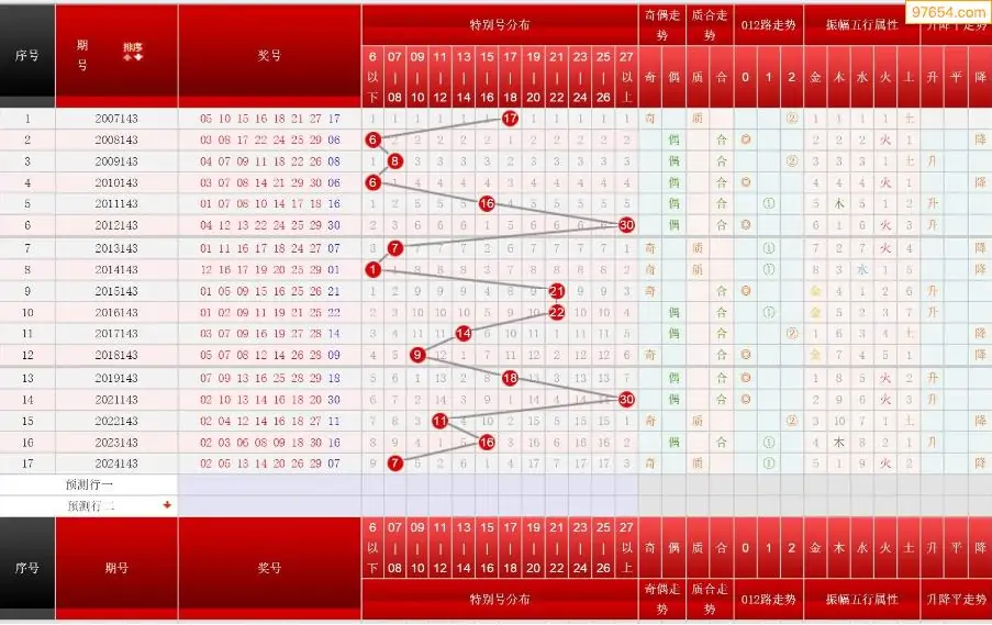 143期七乐彩历史同期图表+走势图