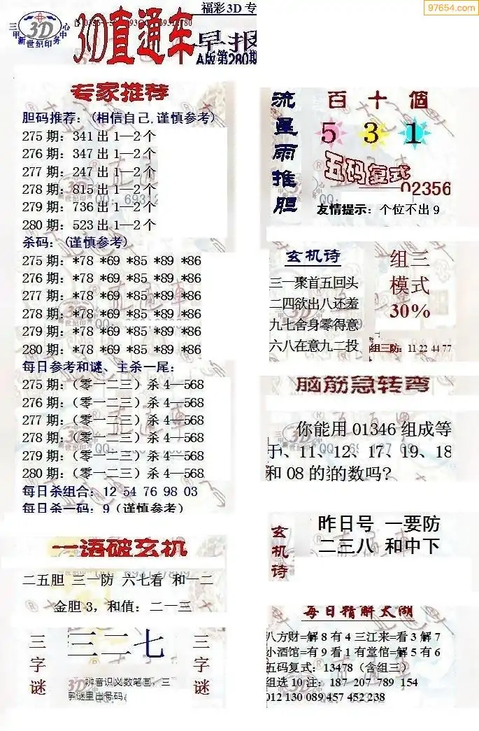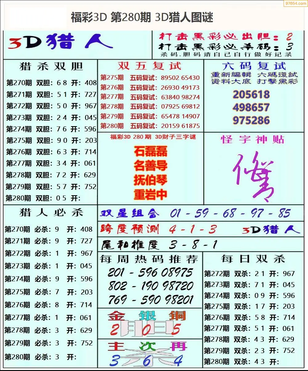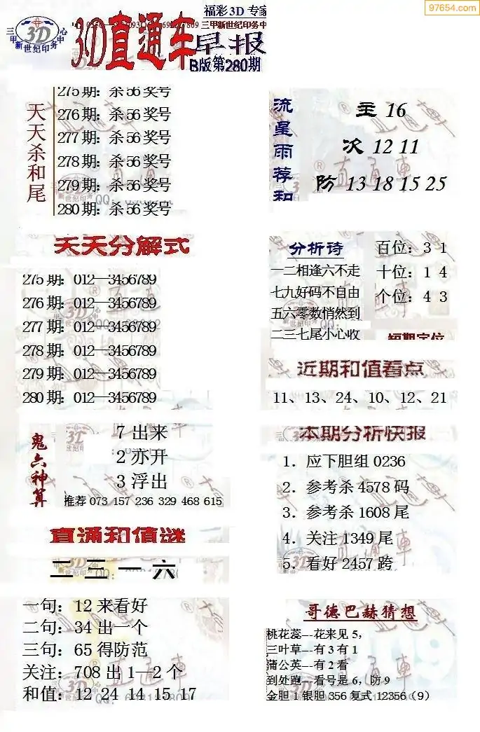3D25281期本站最新收集精品图汇总(晚版)