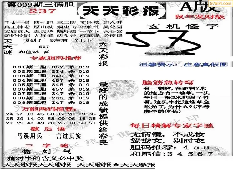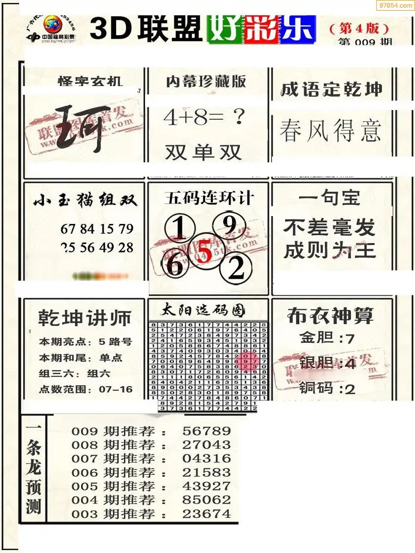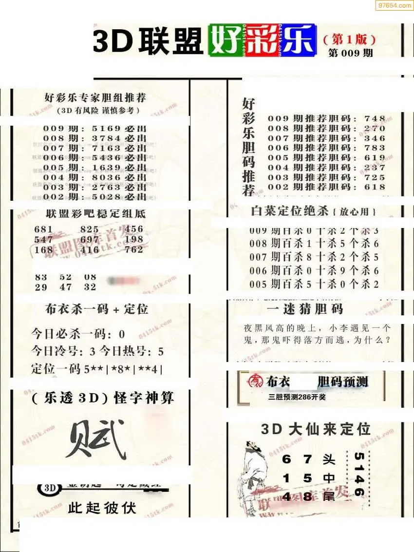 26009期小军系列四版彩报3d图迷