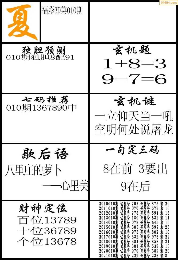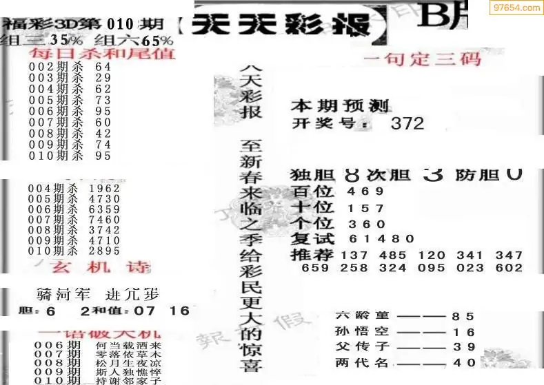 开奖: 3D近10期试机号 3D开奖结果