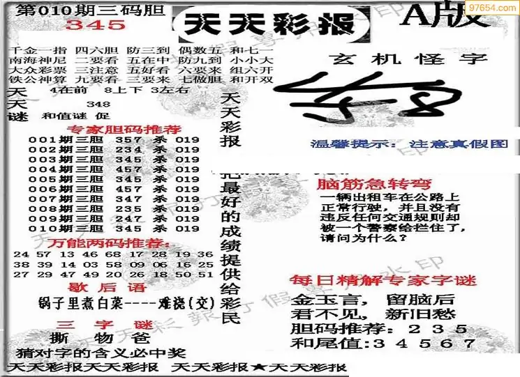 26010期小军系列四版彩报3d图迷