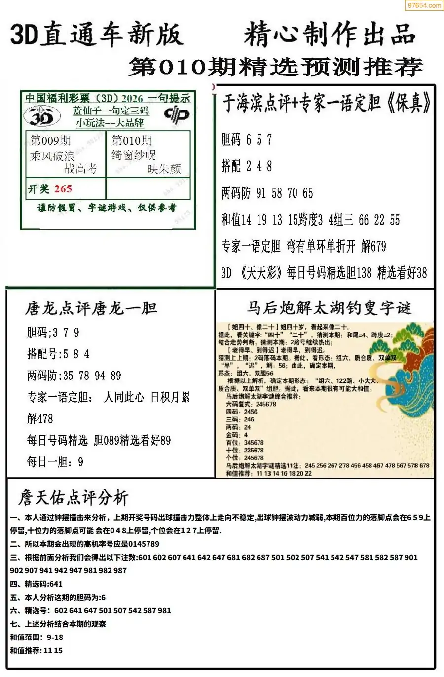 010期3d直通车新版预测推荐