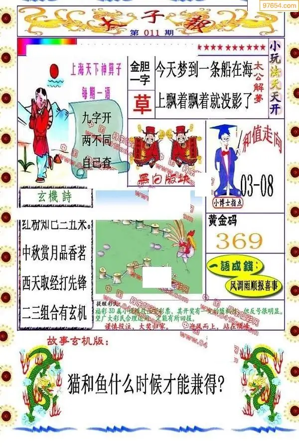 011期福彩太子报红五图库