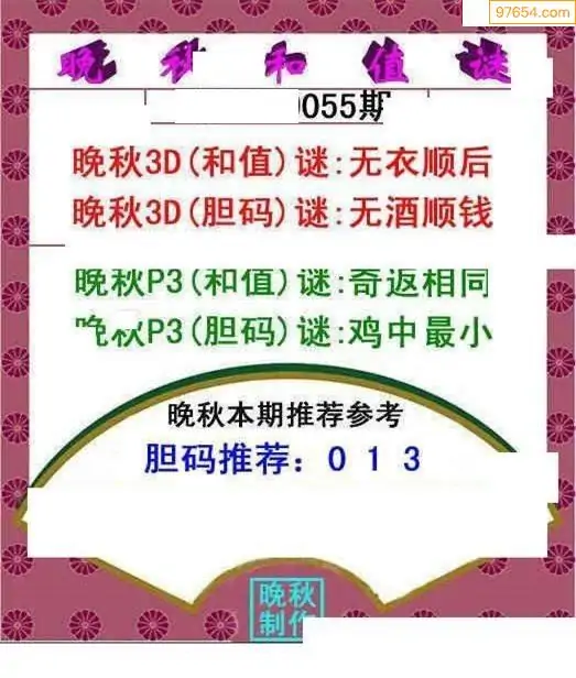 26055期晚秋和值谜胆码推荐