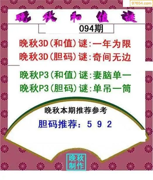 26094期晚秋和值谜胆码推荐
