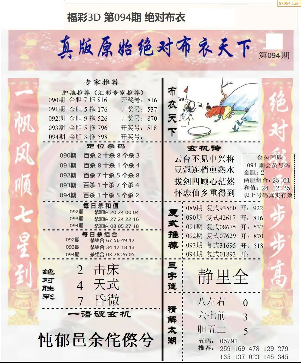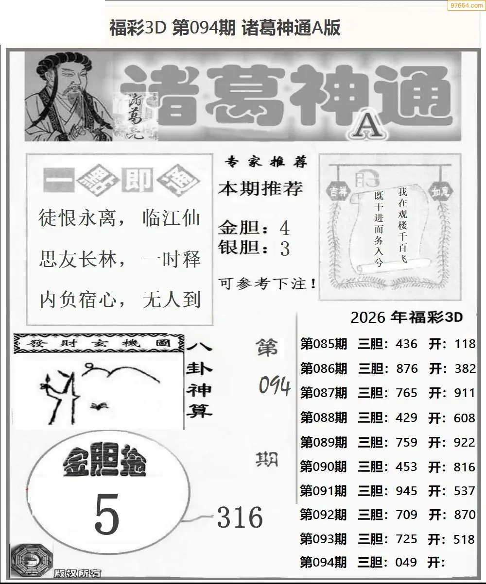 26094期小军系列四版彩报3d图迷