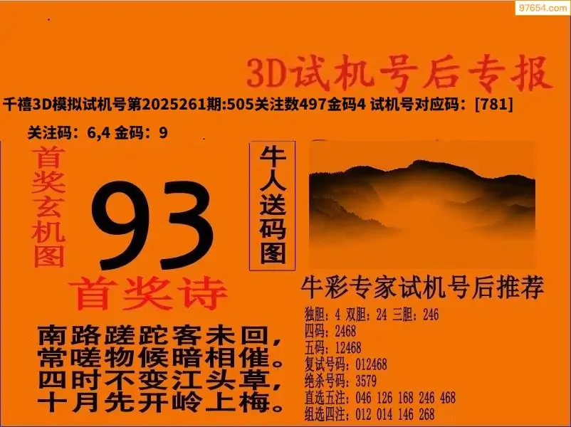 3D264期陈哲友福彩试机号后一语定胆(原创)