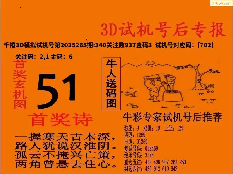 25年265期3d试机号后一语定胆分析汇总