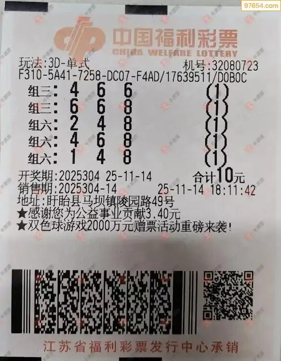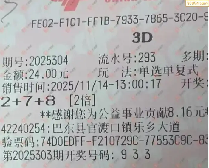 25304期福彩3d今天彩民晒票