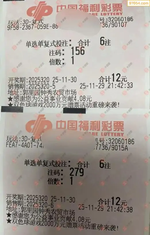 25320期福彩3d今天彩民晒票