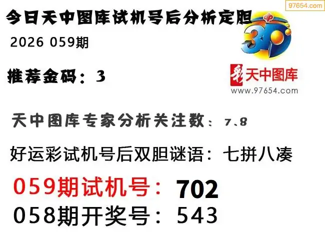 26年059期3d试机号后一语定胆分析汇总