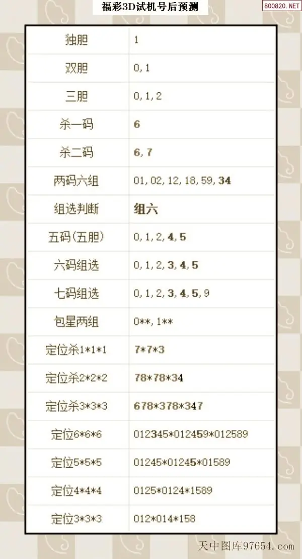 26098期3d试机号分析预测图迷汇总