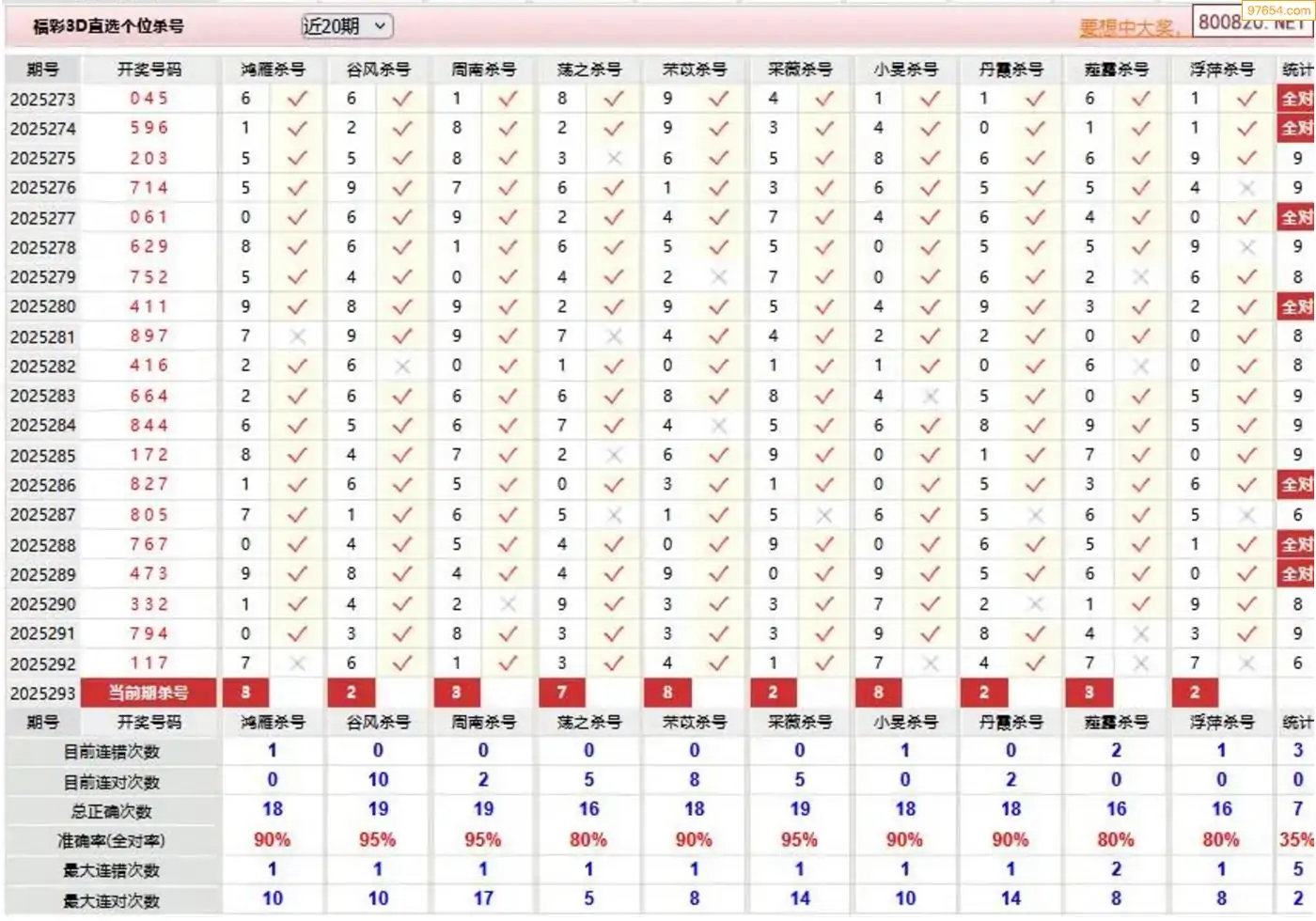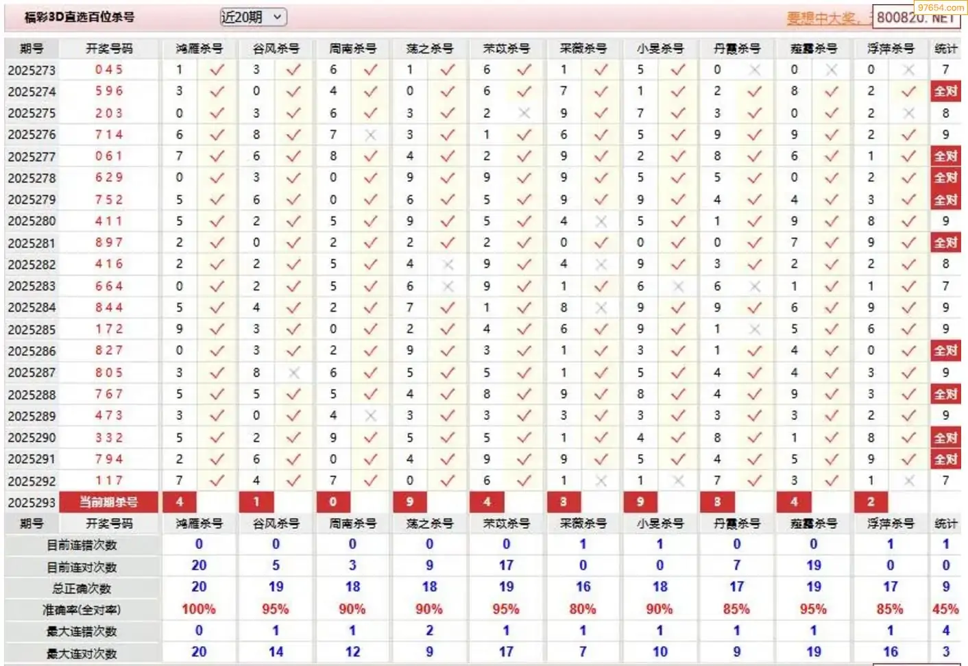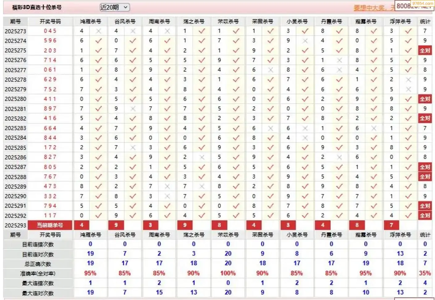 3D294期天中财神原创杀码条件汇总