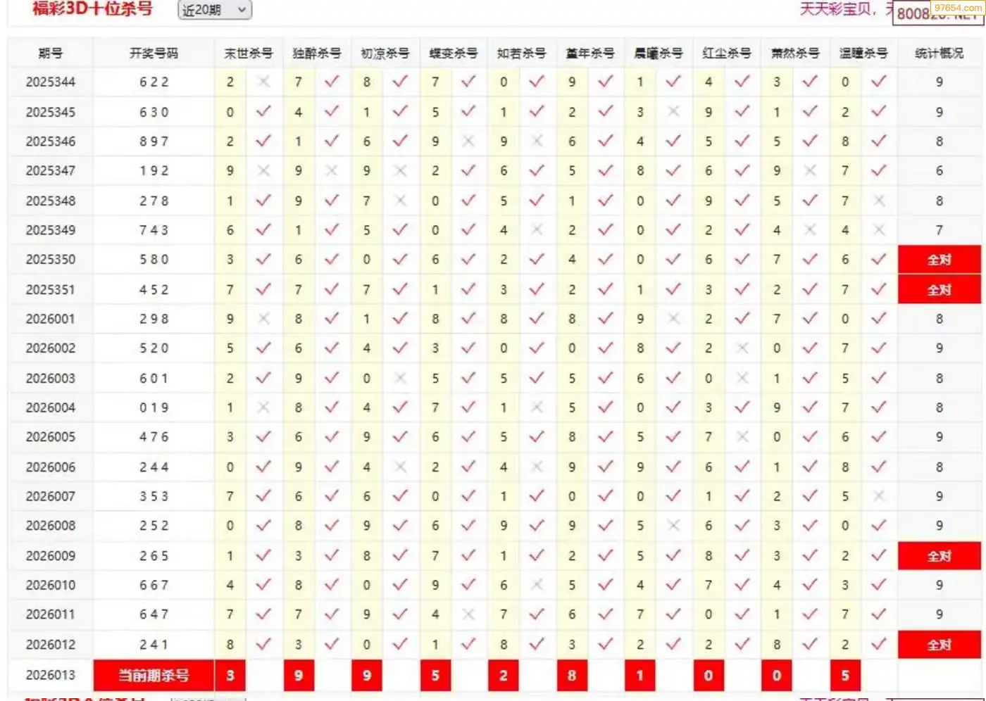 福彩3D26年014期非诚勿扰杀两号 3连中
