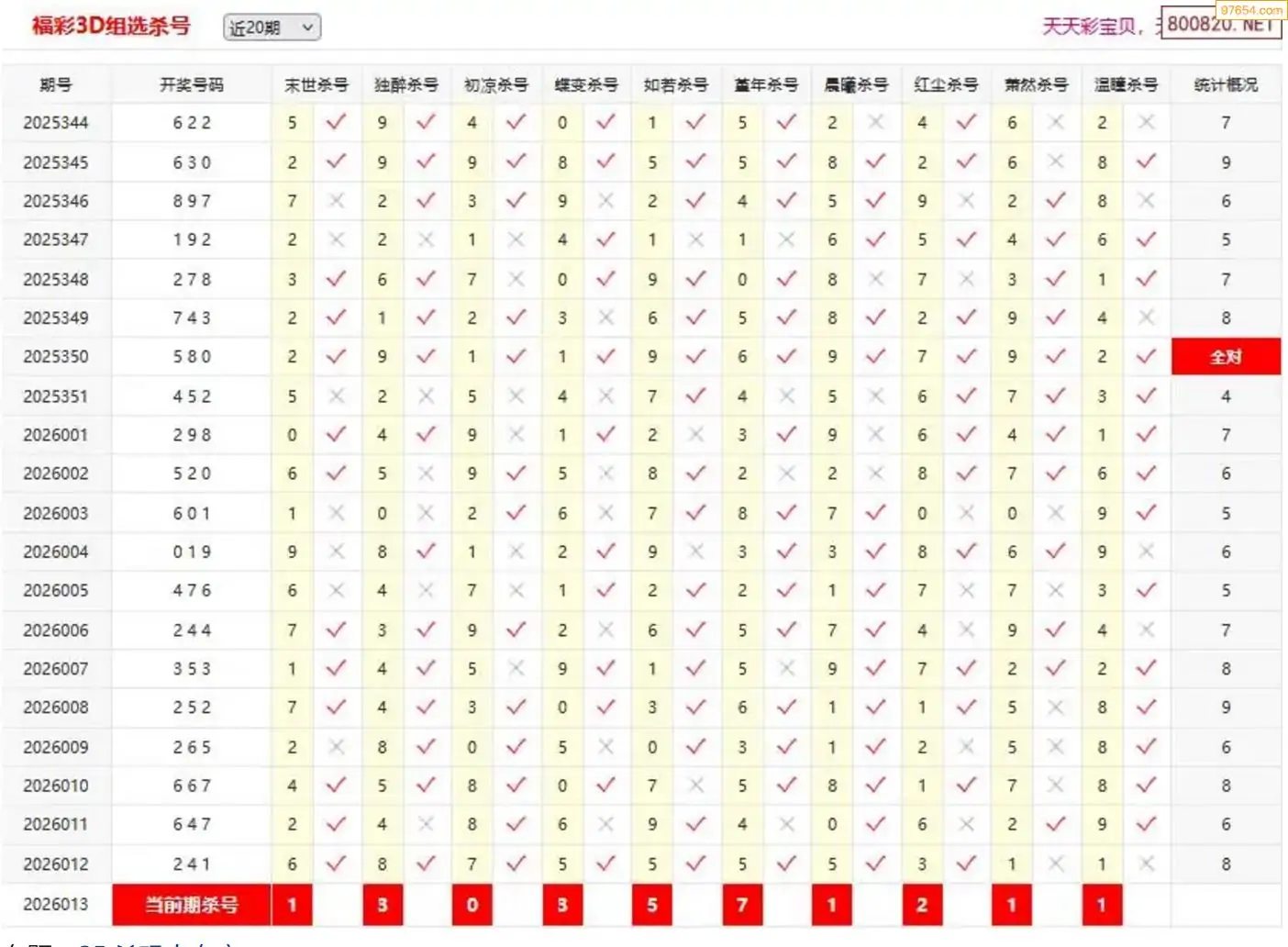 福彩3D26年014期非诚勿扰杀两号 3连中