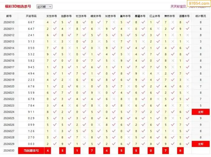 3D031期天中财神原创杀码条件汇总