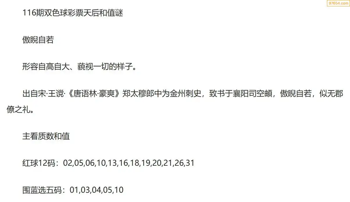 彩票天后双色球25年116期今日和值谜