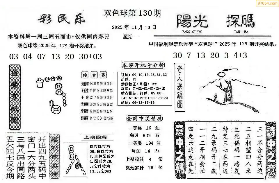 25年双色球130期彩民乐+阳光探码图谜