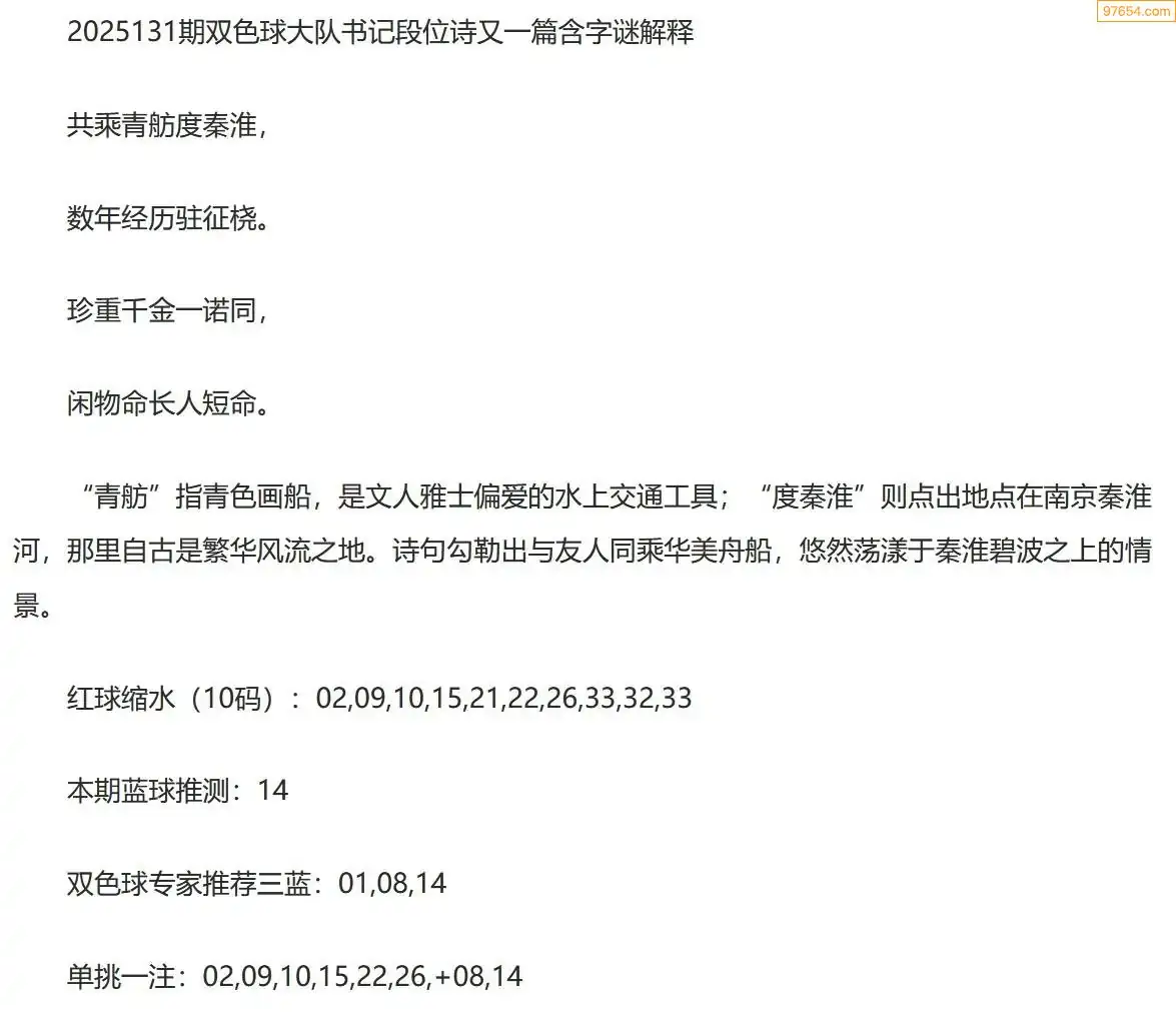 131期牛彩双色球字迷诗迷汇总(天中整理)